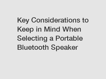 Key Considerations to Keep in Mind When Selecting a Portable Bluetooth Speaker