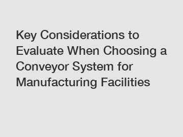 Understanding Your NeedsBefore selecting a conveyor system, it is crucial to analyze the specific needs of your manufacturing facility.